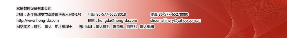 宏大鞋机坐落于机械制造业极为发达的浙江省瑞安市,是一家集制鞋机械、鞋模和电工机械研发、生产和销售于一体的高新技术企业。公司占地20000㎡,现有员工200余人,其中具有大专学历以上60人,专业技术人员50人。